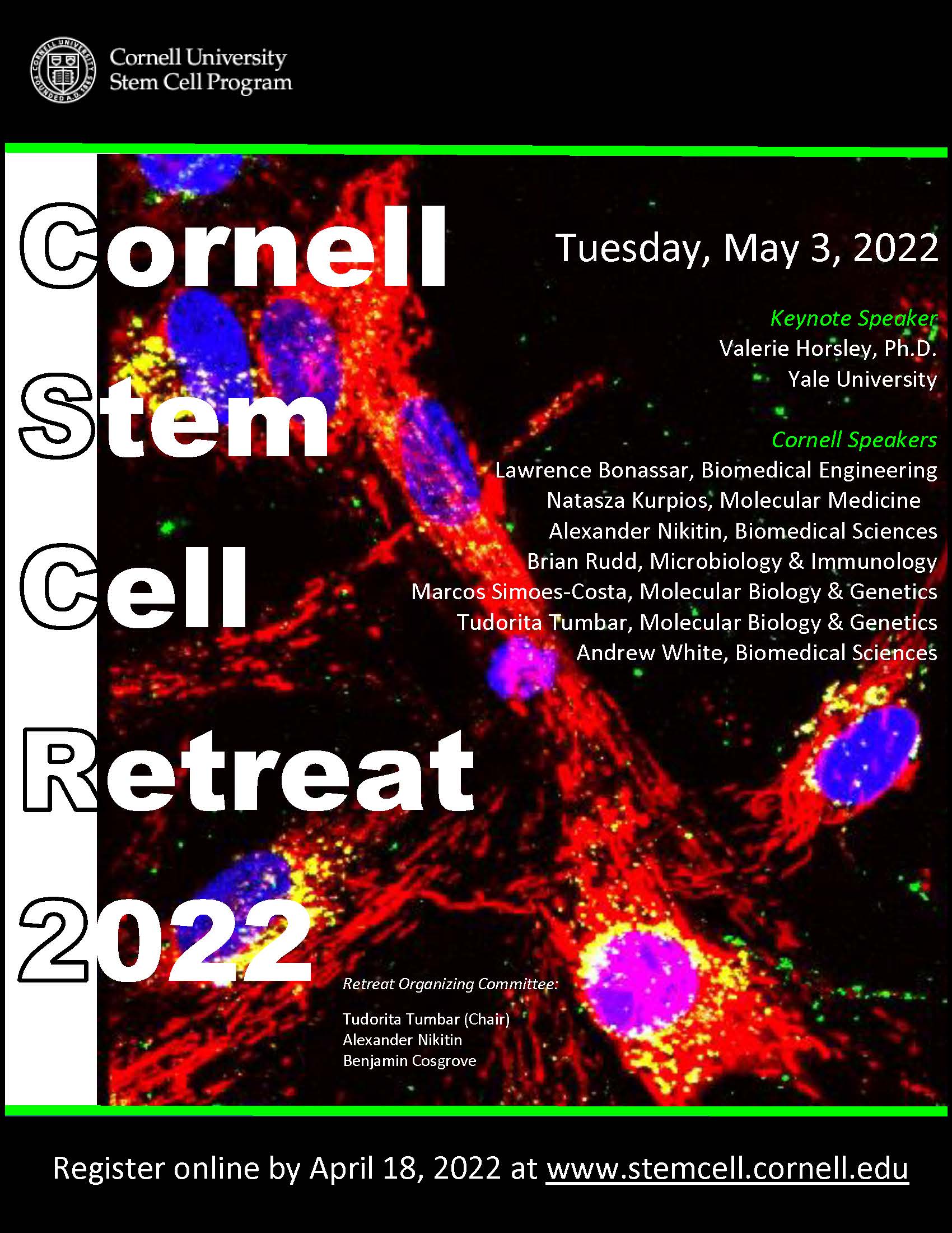 Stem Cell Program Retreats aim to bring the Stem Cell Community together in a more intimate and casual setting. The retreats include talks by SCP faculty and a keynote speaker, a break-out session, and a poster session. The poster competition awards intended for students and postdocs are valued $600, $500, and $400 in funds dedicated to research-related expenses such as computer, science books, journal subscriptions, and travel to stem cell scientific meetings. Click on the link below each poster for more information.